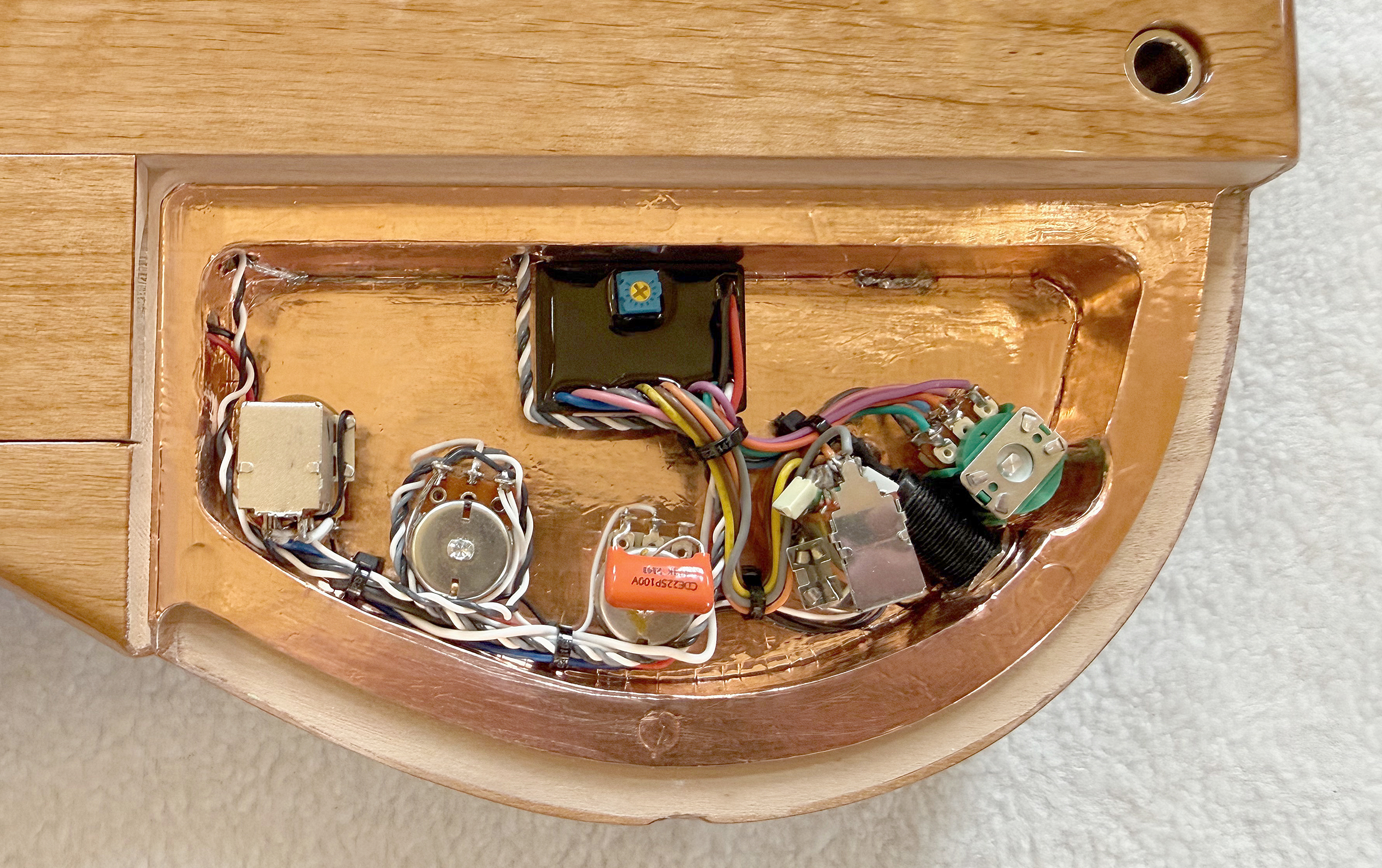 Stacked Volume/passive tone, blend, mids (with mid-shift on push-pull), stacked bass/treble,